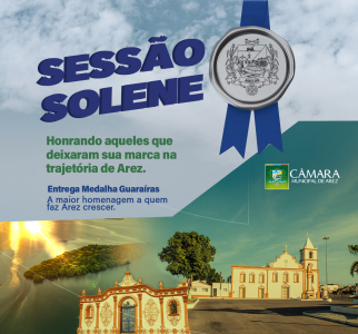 A Câmara Municipal de Arez tem a honra de convidar toda a população para a Sessão Solene de Entrega da Comenda Guaraíras de Honra ao Mérito Arezense, uma homenagem destinada a reconhecer os filhos e filhas da nossa terra que se destacaram pelo empreendedorismo, liderança, inovação e contribuição ao desenvolvimento do município.